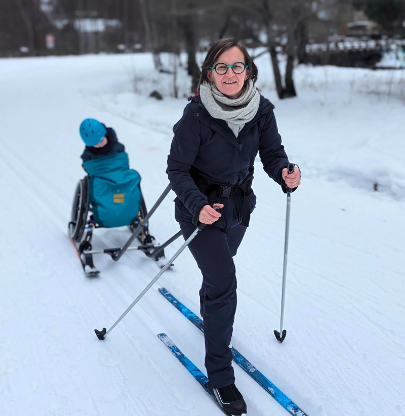 Etienne a grandi et cette année la poussette est trop petite, et il est installé dans un fauteuil roulant de petite taille. Claire, sa maman, nous a contactés pour trouver une solution lui permettant de « skier » en famille.